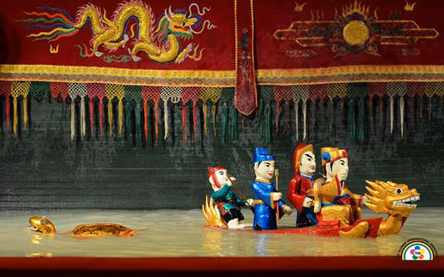 Một tích trò biểu diễn của phường rối nước Bùi Thượng, xã Lê Lợi, Hải Dương