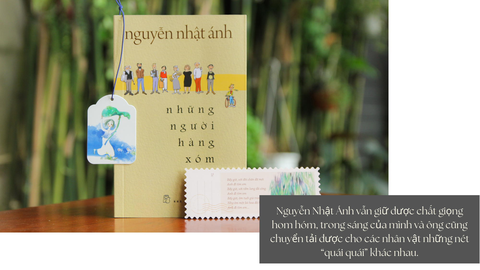 Cuốn truyện không viết về tuổi học trò tinh quái, lắm chiêu mà kể về những người hàng xóm đã trưởng thành, thậm chí đã và sắp hoàn thành nhiệm vụ của đời mình, nhưng chất thơ ngây, trong trẻo vẫn lấp lánh. Là bởi vì cuộc sống vốn thế hay vì nó được chiếu qua lăng kính của nhà văn Nguyễn Nhật Ánh?