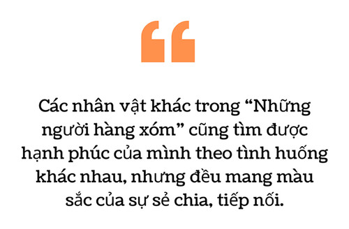 Các nhân vật khác trong “Những người hàng xóm” cũng tìm được hạnh phúc của mình theo tình huống khác nhau, nhưng đều mang màu sắc của sự sẻ chia, tiếp nối.