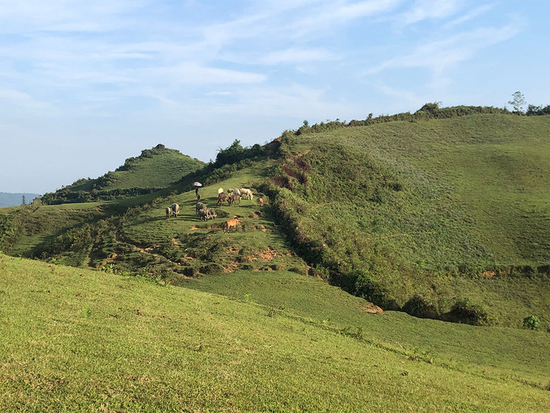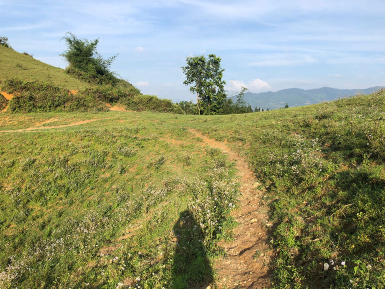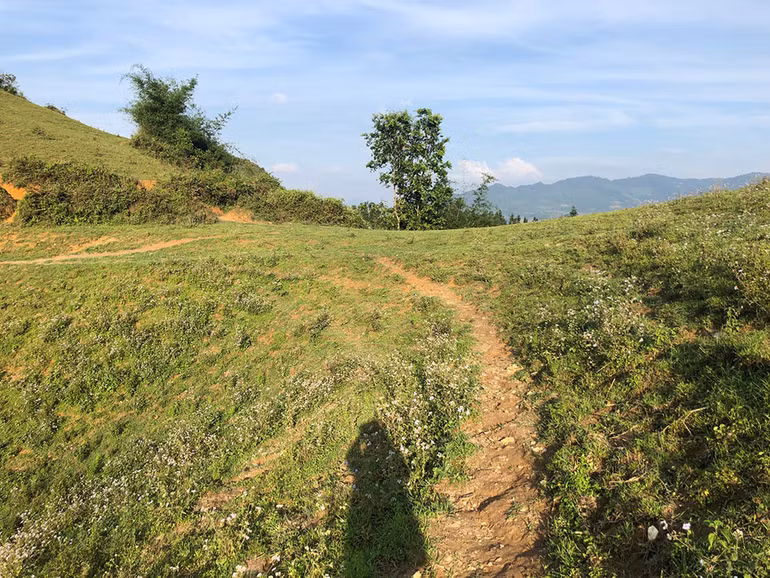 Đến chân đồi, có nhiều lối để leo lên đỉnh. Có những đoạn đã thành đường mòn dành cho ngựa đi, lối đi nhỏ xíu, hằn in dấu móng ngựa và những cơn mưa đêm đã biến con đường mòn thành cả một đoạn đường ngập bùn đất. Có lối đi mới nhìn tưởng khá dốc, nhưng lại là sườn cỏ thoai thoải, leo không hề mệt.