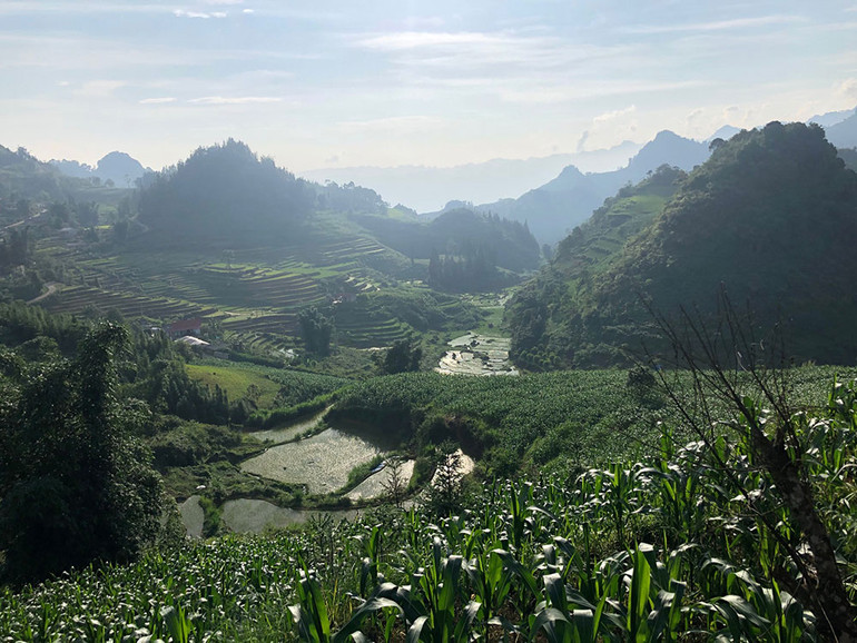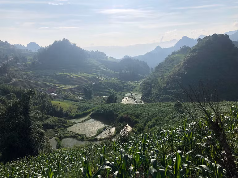 Dọc đường từ Bắc Hà đi Ngải Thầu, phong cảnh hai bên đường vô cùng hấp dẫn với những thung lũng rợp hoa ngô, những thửa ruộng bậc thang xanh mướt mát trải dài trên sườn núi, và hoa dại mọc khắp nơi trong thung lũng. Xe ô tô đến Ngải Thầu có thể đậu phía ngoài, cách đỉnh đồi khoảng gần 2km, và từ đây bạn phải leo bộ lên đồi.
