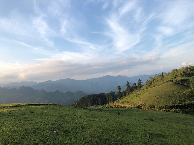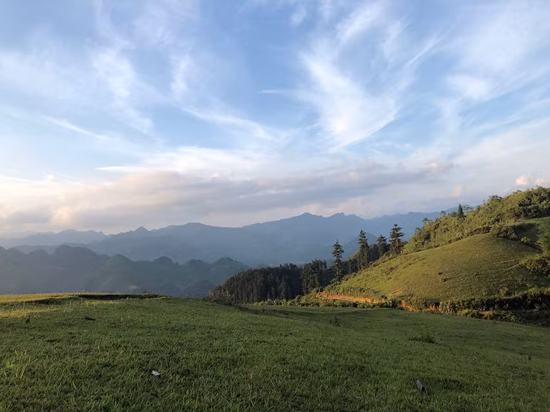 Đỉnh Ngải Thầu chưa phải là đỉnh núi cao nhất trong khu vực này, nhưng lại là vị trí vô cùng thuận lợi để ngắm hoàng hôn. Đỉnh đồi trải dài, không gian rộng, tầm nhìn thoáng về cả bốn hướng, cùng với thảm cỏ non mướt xanh ngắt dưới chân trải dài đủ làm say mâ bất cứ du khách nào.