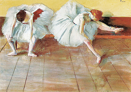 Sau hàng chục năm trời khổ luyện, rèn giũa trước những tấm gương trong phòng tập, những vũ nữ ba lê mới được đứng trước khán giả trong ánh đèn sân khấu lộng lẫy. Lúc này là thời điểm người nghệ sĩ thăng hoa nhất, váy xòe rộng như những bông hoa, mà dường như chỉ ánh đèn trên sàn diễn mới làm chúng bung nở. Những hàng dài vũ công đều tăm tắp, nhẹ nhàng bay bổng trong nền nhạc du dương với những bộ cánh trắng tinh khôi quả thực đã được Degas đẩy đến đỉnh cao của hội họa. Đằng sau cánh gà là những buổi tập đầy mồ hôi, nước mắt và cả máu nhưng khi lên sân khấu, khán giả chỉ thấy những vũ công đắm chìm trong những vũ điệu thanh thoát, nhẹ nhàng tung bay như những bông tuyết lấp lánh.
