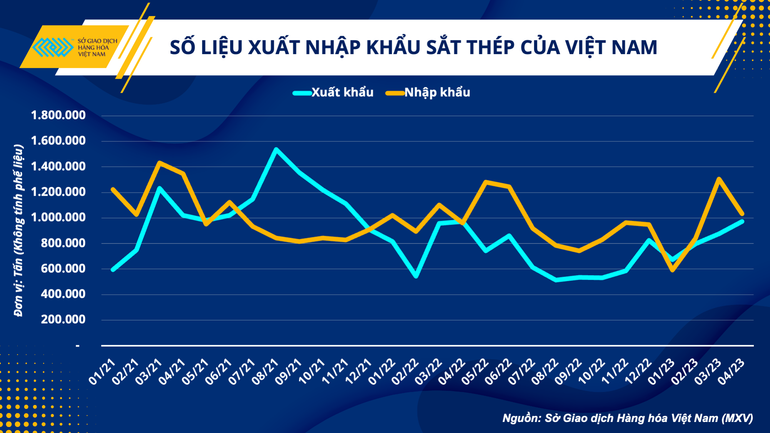 Theo số liệu từ Tổng cục Hải quan, nước ta nhập khẩu 11,69 triệu tấn sắt thép các loại, và 4,16 triệu tấn sắt phế liệu, đồng thời xuất khẩu 8,39 triệu tấn. Thống kê sơ bộ cũng cho thấy, lũy kế từ đầu năm 2023 tính đến ngày 15/5, nước ta nhập khẩu 4,19 triệu tấn sắt thép các loại cùng với gần 2 triệu tấn phế liệu sắt thép, xuất khẩu 3,66 triệu tấn.