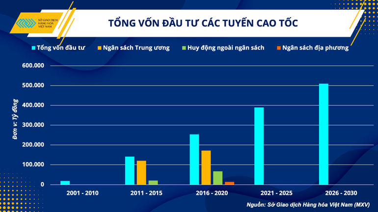 Trong giai đoạn 2021-2025, phấn đấu hoàn thành khoảng 1.800km, nâng tổng số đường cao tốc tới năm 2025 đạt khoảng 3.000km, với nguồn vốn đầu tư dự kiến khoảng 390.000 tỷ đồng. Trong khi đó, tầm nhìn giai đoạn 2026-2030, nước ta phấn đấu hoàn thành thêm khoảng 2.000km, nâng tổng chiều dài đường bộ cao tốc đưa vào khai thác lên khoảng 5.000km, với nguồn vốn khoảng 510 nghìn tỷ đồng.