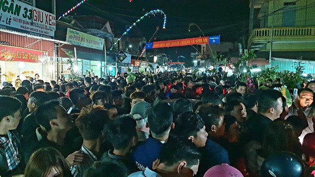 Đường trong xã nhỏ, nhưng xe ô tô 7 chỗ, thậm chí 16 chỗ vẫn điềm nhiên đi vào. Từ ùn tắc cục bộ, hàng nghìn người đã bị kẹt cứng từ hướng ngã tư quốc lộ 10, quốc lộ 21B về phía quốc lộ 38B. Bắt đầu từ khoảng hơn 8 giờ tối, mọi người, mọi phương tiện không thể di chuyển. Tất cả các khoảng trống nhanh chóng bị lấp đầy một cách thiếu ý thức. Các dòng người hỗn loạn đan vào nhau rồi… đứng im. Người trong chợ xô đẩy ra phía ngoài, người phía ngoài chen lấn để vào trong.