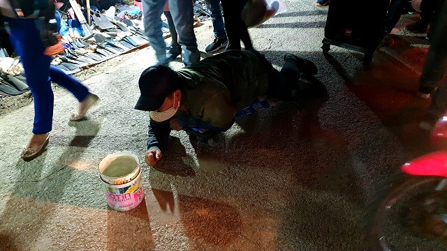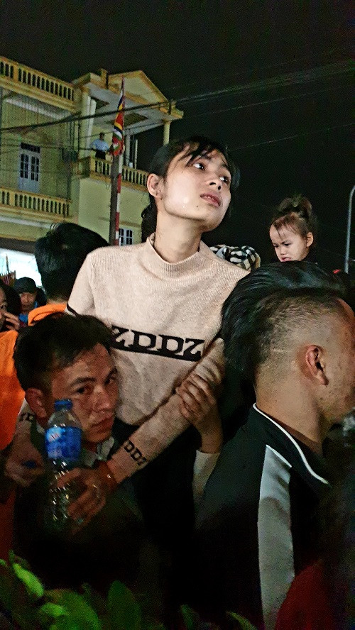 Cô gái này khóc ngất vì không thở được dù đã được người thân bế lên cao. Gần đó, một cô gái khác thật sự ngất xỉu ngay trên xe máy. Chiếc xe đổ nghiêng vào một xe khác. Vài người đàn ông cố lắm mới giữ được cô gái và chiếc xe.