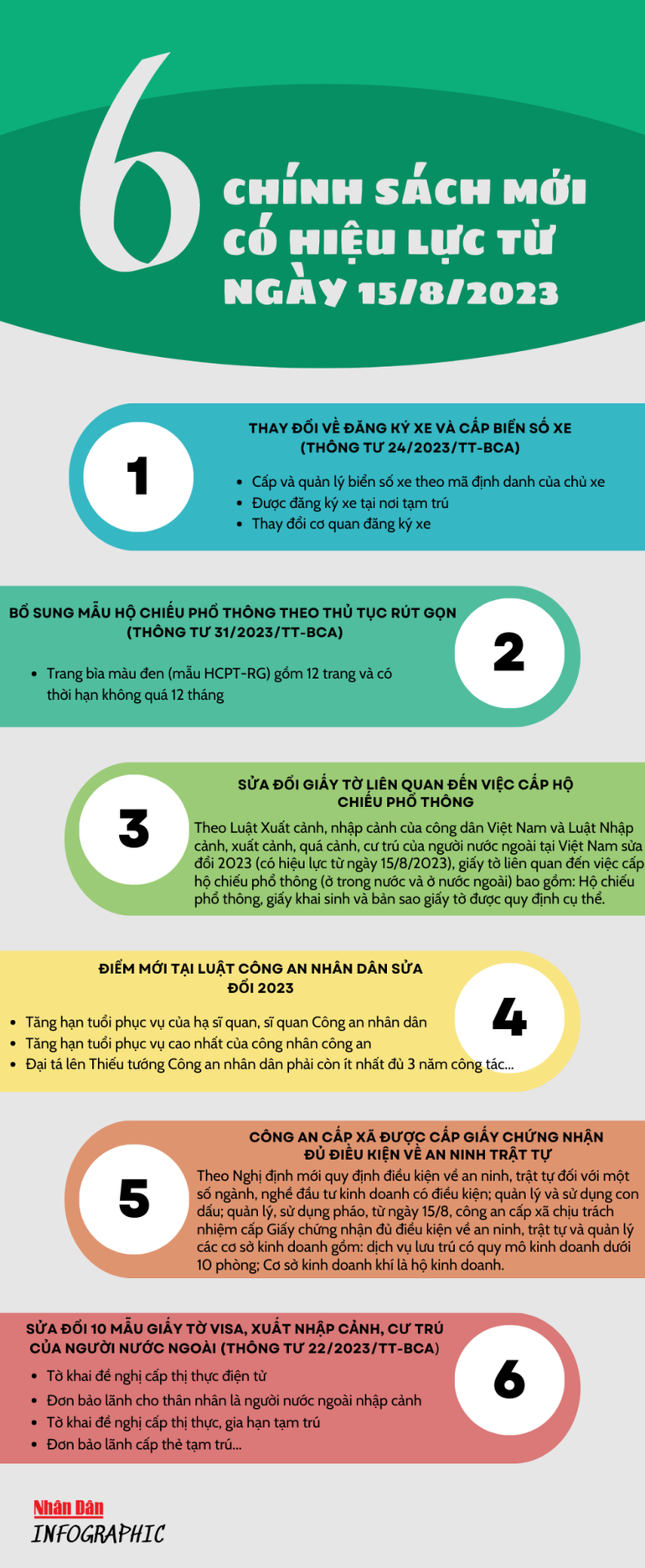 Từ ngày 15/8/2023, có 6 chính sách, quy định mới được sửa đổi, bổ sung nhằm hỗ trợ người dân thực hiện các thủ tục hành chính; nắm rõ các quy định của các bộ máy chức năng, phục vụ tốt nhu cầu dân sinh.