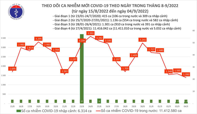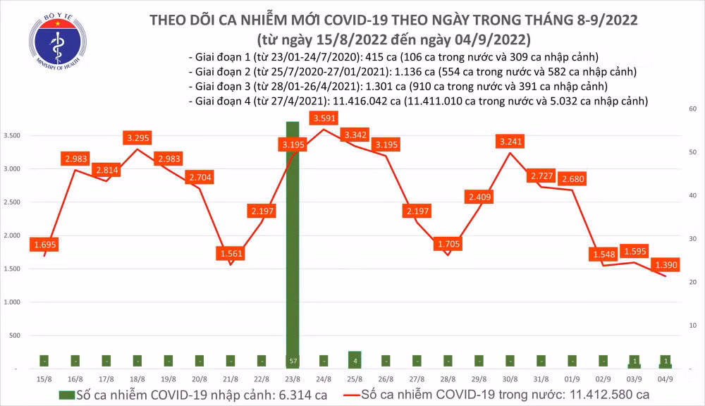Từ 17 giờ 30 phút ngày 3/9 đến 17 giờ 30 phút ngày 4/9 ghi nhận 1 ca tử vong tại Thanh Hóa. Trung bình số tử vong ghi nhận trong 7 ngày qua: 1 ca.