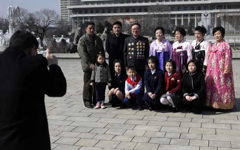 Một gia đình Triều Tiên chụp ảnh kỷ niệm nhân Ngày Quốc tế Phụ nữ ở thủ đô Bình Nhưỡng, Triều Tiên (Ảnh: AP)