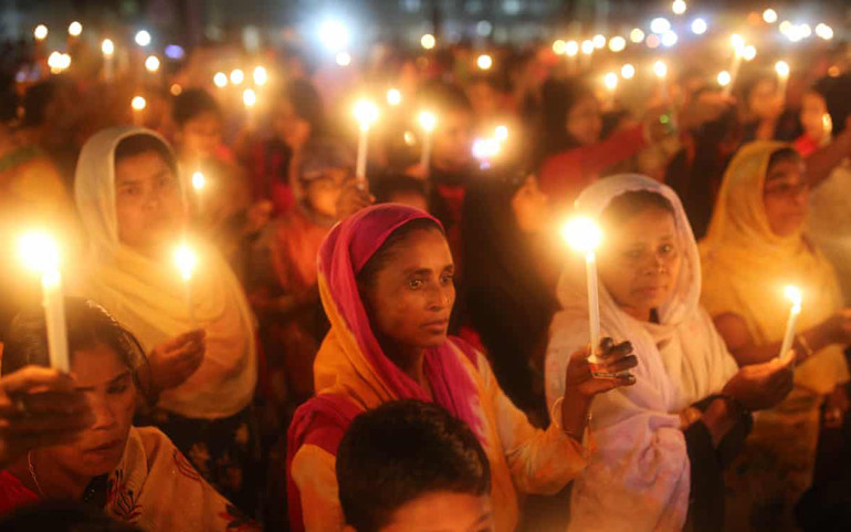 Các phụ nữ tham gia một buổi thắp nến để kỷ niệm Ngày Quốc tế Phụ nữ tại Dhaka, Bangladesh. (Ảnh:Barcroft Images)