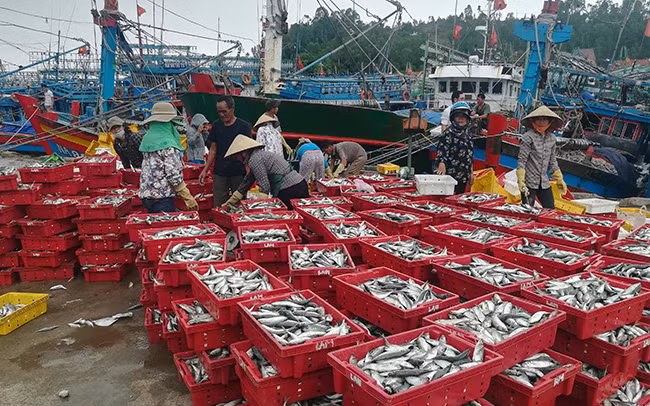 Trung tuần tháng 8, trở lại cảng cá Lạch Quèn ở huyện Quỳnh Lưu, chúng tôi chứng kiến cảnh trên bến dưới thuyền, mua bán hải sản diễn ra nhộn nhịp. Nhiều loại hải sản từ trên boong tàu theo dây chuyền trượt xuống được chị em phụ nữ nhẹ nhàng đón, xếp từng chồng cẩn thận, trước khi chuyển lên xe đông lạnh đưa đi tiêu thụ. Tàu nào bán xong hải sản, mọi người liền tranh thủ vá lưới, sửa chữa máy móc, thiết bị và chuẩn bị nhu yếu phẩm, dầu, đá… cho chuyến ra khơi mới.