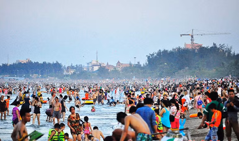Biển Cửa Lò tập trung nhiều người đến tránh nắng.