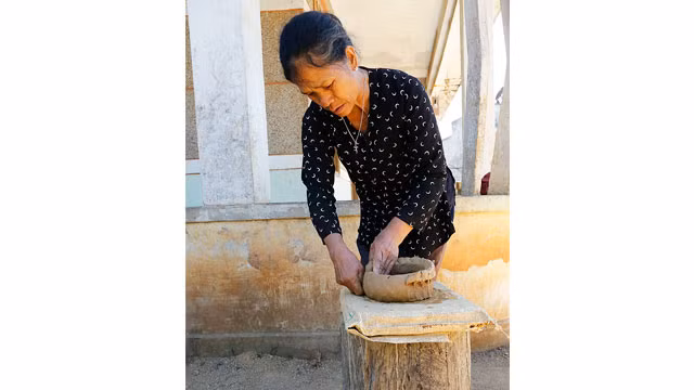 Nghệ nhân Ma Li đang tạo hình nồi đất.
