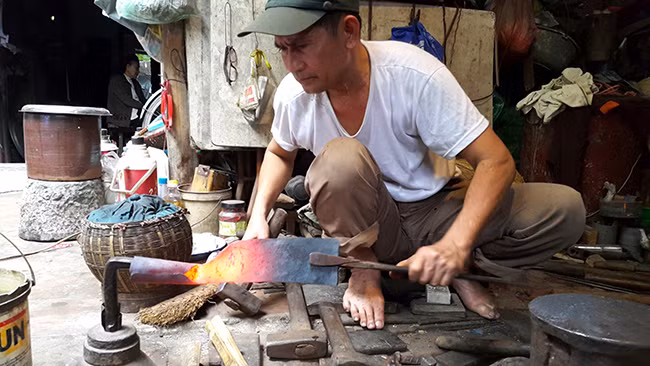 Người thợ làng Ða Sĩ vẫn miệt mài rèn ra những con dao, cái kéo. Ảnh: CÔNG PHƯƠNG
