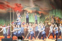Các nghệ sĩ biểu diễn trong chương trình “Thành phố Hồ Chí Minh – Nơi hội tụ những dòng sông” tại khu vực Bà Rịa-Vũng Tàu. (Ảnh: Nhà hát kịch Thành phố)