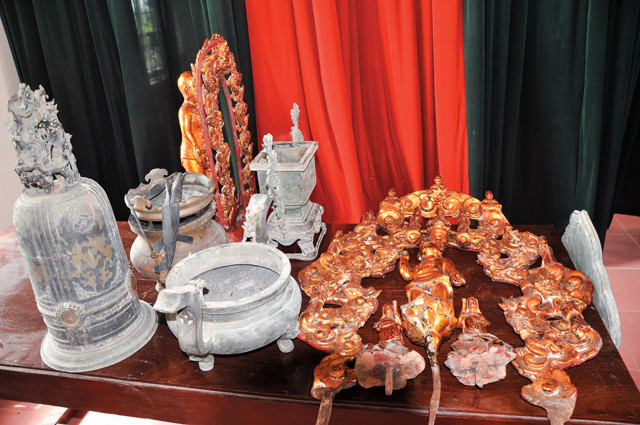 Số cổ vật tội phạm truy nã Nguyễn Ngọc Đương cùng đồng bọn trộm cắp bị công an thu giữ. Ảnh trong bài | NGUYỄN QUÂN
