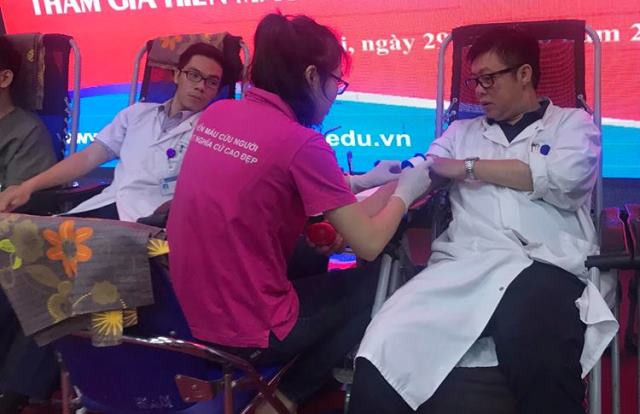 Giám đốc Bệnh viện Thanh Nhàn - PGS.TS Đào Quang Minh hiến máu.