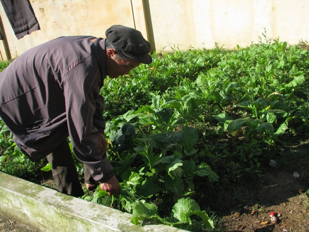 Ông Tẩn Sa Vản với đám rau cỏn con trong Trung tâm cai nghiện.