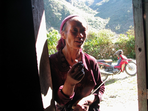 Ngược với cặp vợ chồng của Chẻo A Sun chồng cai được mà vợ nghiện nặng, thì cặp vợ chồng Tẩn Mí Dao (42 tuổi) và Chẻo A Sì (45 tuổi) vợ đã cai được một năm nhưng chồng lại ốm yếu vì nghiện. Tôi gặp chị Dao ngay trước cửa lán nơi Vần và Mẩy ở, khi chị trên đường vào rừng lấy củi ghé lán hỏi thăm hai người khốn khổ. Chị Mí Dao khoe đã cai nghiện được hơn một năm nay rồi, chị tự cai ở nhà, vợ chồng giúp nhau cai thôi. Nhưng chồng nghiện “to” quá nên cai không nổi. Giờ da dẻ chị Dao hồng hào, nét mặt tươi tắn, riêng hàm răng thì đã rụng gần hết. Chị Dao nghiện 10 năm nay, từ khi theo chồng. Còn chồng chị nghiện từ hồi thanh niên, cai đã hai lần rồi nhưng lại tái nghiện. Anh cán bộ nói đợt tới này sẽ lại cho Chẻo A Sì đi cai thêm một lần nữa.