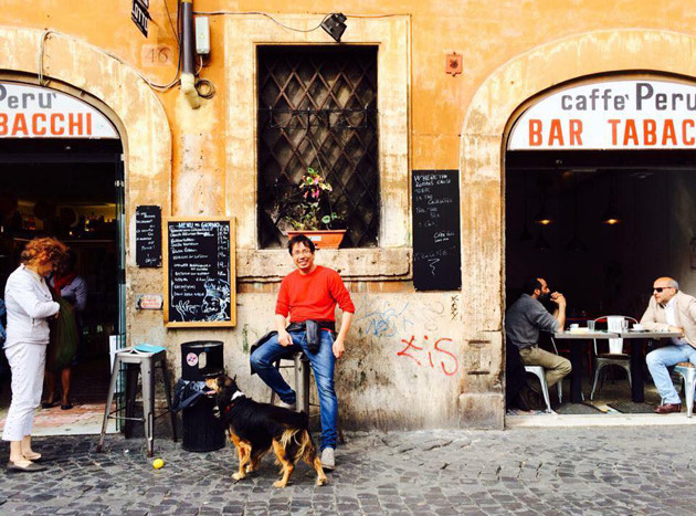 Tác giả tại một quán cà phê quen ở Roma.