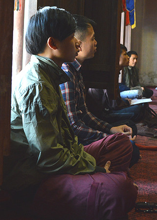 Các phật tử trẻ rất kính cẩn làm lễ trước khi vào chính điện.