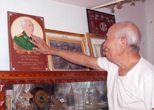 Cụ Cắm trước chân dung Đại tướng Võ Nguyên Giáp.