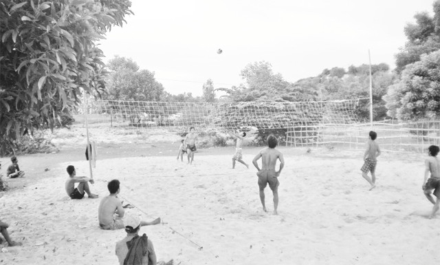 Thanh niên người Đàng Hạ ở Xuân Đừng chơi bóng chuyền sau giờ lao động.