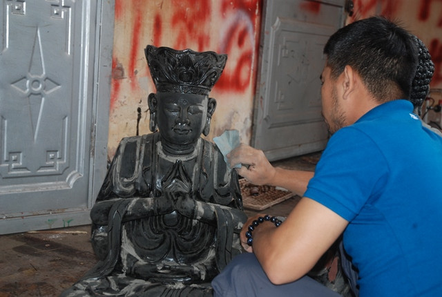 “Làm quỳ đã khó, dát quỳ lên tượng lại càng khó hơn, việc đó đòi hỏi người thợ phải có cái tâm, phải kiên trì, nhẫn nại nếu không sẽ rất khó thành công”, ông Chung nói.