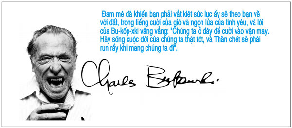 Hãy vắt kiệt bản thân. Để nó leo lên lưng bạn và cùng nó chìm vào cõi hư vô. Để nó giết bạn và ăn tươi nuốt sống những gì còn sót lại".Ông đã viết lách từ năm 24 tuổi, nhưng chán nản vì không được in tác phẩm, đã chìm vào những cơn say trong suốt 10 năm, rồi những công việc vô nghĩa, cho đến khi lại quay về với văn chương vào thời điểm mà một vết loét dạ dày đã đẩy ông đến rất gần cái chết.
