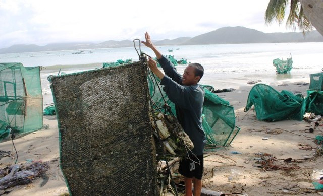 Thiệt hại ít hơn, những ngày này, ông Trần Xuân Long lầm lũi tìm kiếm, khiêng từng chiếc lồng bị sóng biển đánh méo về sửa sang lại. 4.000 con tôm hùm xanh trôi theo dòng nước lũ ra biển, trắng tay 250 triệu đồng. Như đứt từng khúc ruột, ông Long nói: “Biết là bão lớn, mỗi lồng tôi giằng 50 bao cát, nhưng cũng bị nuốt trắng".