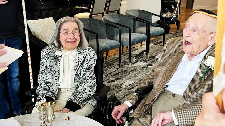 Sách Kỷ lục Thế giới Guinness vừa xác nhận cụ ông Bernie Littman, 100 tuổi và cụ bà Marjorie Fiterman, 102 tuổi, đã được ghi nhận là “Cặp đôi mới cưới lớn tuổi nhất thế giới”. Hai người (trong ảnh) gặp nhau tại viện dưỡng lão nơi họ sinh sống ở Philadelphia (Mỹ) rồi yêu nhau và kết hôn vào ngày 19/5, họ cũng trở thành cặp đôi có tổng số tuổi lớn nhất khi cưới.