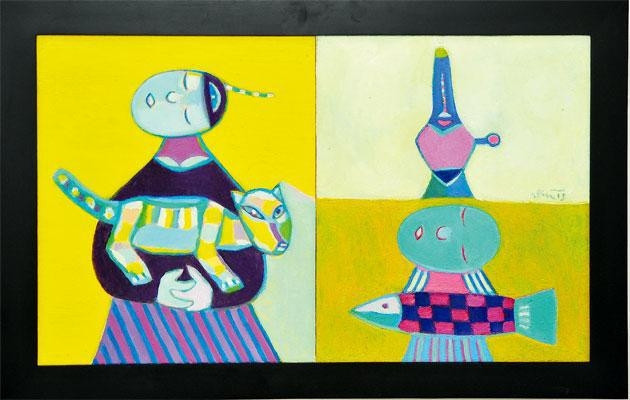 2. Hoàng Phượng Vỹ con trai út nhà thơ Hoàng Trung Thông, có bằng kiến trúc làm chứng chỉ hoàn tất đường học, thì rốt cục trong đời, anh cũng định tên mình trong danh xưng họa sĩ. Khác với hầu hết những người cùng thế hệ, Vỹ không có mác tốt nghiệp Trường Mỹ thuật Yết Kiêu làm căn cước, nhưng thẻ hành nghề của anh lại may mắn hơn vì lưu bóng dáng những bậc lão thành tài hoa nhất mực, những Bùi Xuân Phái, Nguyễn Sáng, những người bạn của cha Hoàng Trung Thông rồi thành bạn của cậu con trai út vì thằng bé tinh anh và có khiếu hội họa. Vỹ trong hội họa không đình đám như các thành viên nhóm The Gang of five một thời, cũng không buộc mình phải cá tính đến kỳ khôi như nhiều họa sĩ khác, anh không ồn ào bán tranh, không lập ngôn và giàu thiên hướng xã hội như một xu thế của mỹ thuật đương thời, Vỹ tĩnh lặng điềm đạm, nhẩn nha làm việc, nhẩn nha sáng tạo, nhẩn nha thể hiện cái “gu” rất mô - đéc của riêng mình. Mô - đéc nhưng lại thuần túy Việt Nam, nhìn vào là ra Vỹ, ra sự hồn nhiên lãng đãng, nhìn vào là ra tâm hồn Việt bao dung đôn hậu, ấm áp đến trong ngần. Vỹ không hẳn đã sẵn thiên hướng tự do như thế, anh cũng giống phần nhiều các họa sĩ vào đời trong giai đoạn đất nước mở cửa, hội họa bắt đầu hòa nhập với phương Tây, khôn ngoan lựa chọn bản sắc Việt làm hành trang để hút con mắt nhà nghề của những người sưu tập tranh đến từ bên ngoài biên giới. Vô hình chung, anh cùng bạn bè mình phần nào giới thiệu được một hình ảnh Việt Nam ra cùng thế giới. Vỹ là một họa sĩ có nền tảng văn hóa vững, có sự tinh tế đầy bản năng lẫn sức mạnh nội tâm cuộn trào, tuy nhiên vẫn giữ được trước sau tâm thế chừng mực, khuôn phép đúng kiểu người biết thế nào là đủ đầy tròn trịa. Nói như nhà phê bình mỹ thuật Bùi Như Hương, Hoàng Phượng Vỹ y hệt một gã du ca lang thang giữa cuộc đời tìm ý nghĩa trong sự vẽ. Anh là đại diện tiêu biểu của chủ nghĩa “ngây thơ” của Việt Nam, một họa sỹ hiếm khi nói về mình nhưng lại nằm trong số ít các tên tuổi giành được nhiều giải thưởng trong nước và quốc tế...
