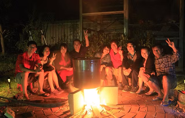 Một nhóm các gia đình tại Adelaide cùng quây quầy bên nồi bánh chưng đón Tết.