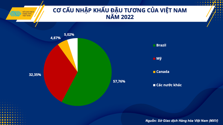 Phần lớn nhu cầu tiêu thụ đậu tương tại nước ta vẫn được đáp ứng bởi nguồn hàng nhập khẩu. Theo số liệu sơ bộ từ Tổng cục Hải quan Việt Nam, nước ta nhập khẩu 1,84 triệu tấn đậu tương trong năm 2022, trong đó Mỹ là nhà cung cấp lớn thứ 2 với 594,791 tấn.
