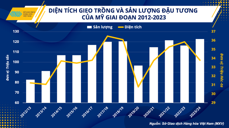 Lý giải cho đà tăng mạnh trong phiên cuối tuần vừa rồi của giá đậu tương, ông Phạm Quang Anh, Giám đốc Trung tâm Tin tức Hàng hóa Việt Nam, cho biết: “Việc diện tích trồng đậu tương năm nay của Mỹ thấp hơn nhiều so với dự đoán của giới phân tích, giữa lúc mùa vụ tại nước này vẫn đang phải đối mặt với rủi ro về thời tiết, đã thổi bùng lo ngại của thị trường rằng nguồn cung hạt có dầu từ Mỹ sẽ bị thu hẹp đáng kể so với triển vọng ban đầu. Chính điều này đã đẩy giá đậu tương CBOT tăng vọt và dự kiến sẽ tiếp tục là yếu tố hỗ trợ giá trong thời gian tới”.
