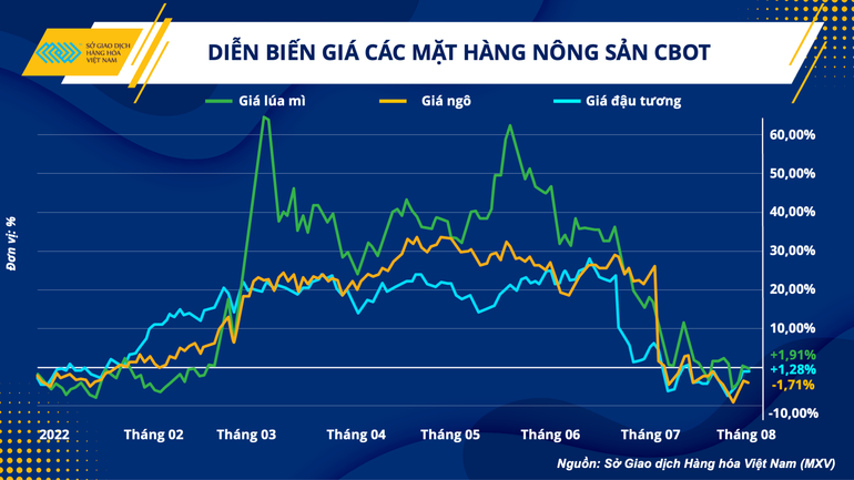 Theo Sở Giao dịch Hàng hóa Việt Nam (MXV), với dự báo khô hạn tiếp tục kéo dài, năng suất ngô và đậu tương cuối vụ sẽ khó đạt được mức kỳ vọng. Nếu như tình hình vẫn không cải thiện, sản lượng ngô Mỹ có thể sẽ sụt giảm khoảng 5 triệu tấn. Chi phí phân bón cao đã khiến cho tổng diện tích gieo trồng năm nay thấp hơn so với năm ngoái nên triển vọng nguồn cung đang dần thắt chặt hơn.