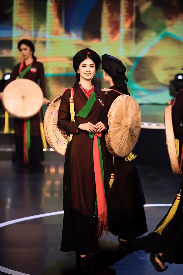 Các thí sinh trình diễn phần mở màn trong trang phục quan họ Bắc Ninh.