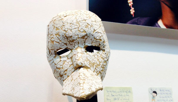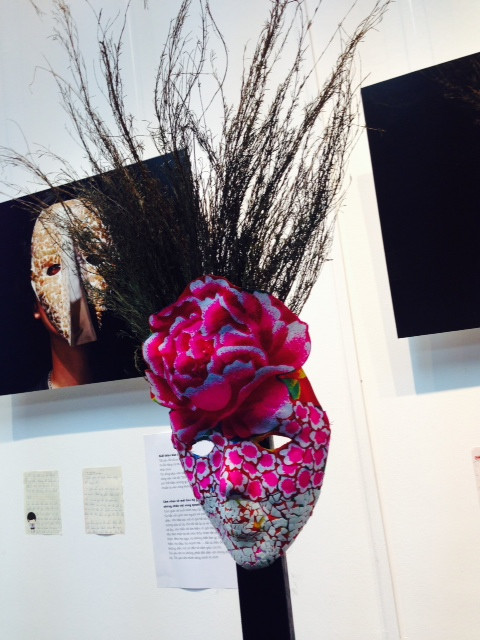 Sáu chiếc mặt nạ hóa trang đặc trưng trong các lễ hội Carnavan của Venice, thay vì lông chim hay kim sa lấp lánh, được “cẩn” hoàn toàn bằng đậu đen, đậu đỏ, đậu tương, các chi tiết hoa trên vải, vỏ ốc, vỏ trứng, rơm, thậm chí chổi xể… Các tác phẩm trưng bày trong triển lãm đã tạo nên bất ngờ thú vị cho khách tham quan. Một khán giả cho biết, anh hoàn toàn bất ngờ khi nhìn gần và nhận ra mặt nạ được phủ bằng hạt đỗ. Anh nói: “Tôi chưa từng thấy ai làm mặt nạ từ chất liệu này cả. Sự sáng tạo của nghệ sĩ thật tuyệt”.