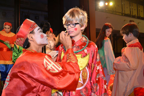Mặc thử trang phục tuồng.