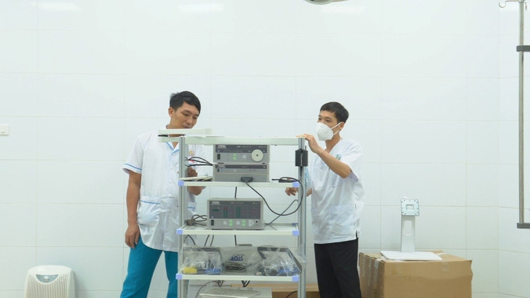 Bên cạnh đó, Nhà khám, chữa bệnh mới cũng được trang bị hệ thống trang thiết bị y tế đồng bộ, hiện đại được nhập khẩu từ các quốc gia có nền y tế phát triển hàng đầu thế giới như: Hệ thống máy X-Quang cao tần kỹ thuật số hãng Shimadzu/Nhật Bản; Hệ thống phẫu thuật nội soi ổ bụng hãng Karl Storz/Mỹ; Hệ thống oxy hóa lỏng, Bồn tắm trẻ, Hệ thống khí sạch phòng mổ; Thang máy chở khách hãng Hyundai trọng lượng 1.350 kg; Máy phát điện tự động hiệu Kirloskar, giường bệnh và nhiều trang thiết bị khác,…