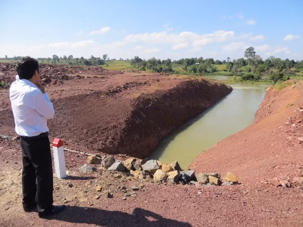 Một cửa trả nước lại môi trường từ kênh dẫn nước của NMTĐ Sê-rê-pốc 4A, nhưng do lượng nước quá ít không thể “cứu sống” dòng sông.