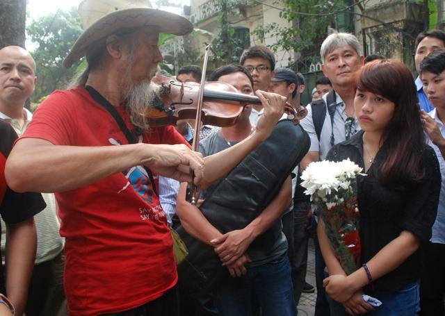 Mọi người kiên nhẫn chờ đợi trong tiếng nhạc đau buồn tiễn đưa Đại tướng của nghệ sĩ violin đường phố Tạ Trí Hải.