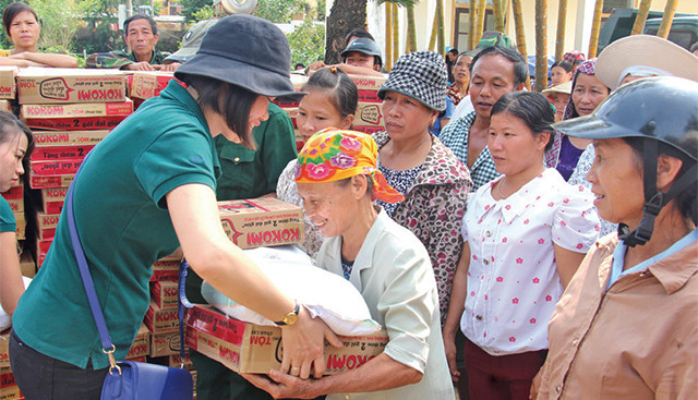 Công ty Bee Green trao quà cho đồng bào lũ lụt ở Hà Tĩnh.