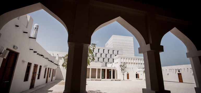 Nếu có thời gian, hãy dành trọn vẹn một buổi sáng để chậm rãi lang thang khám phá khuôn viên vô cùng rộng lớn và thoáng đãng này. Ngoài bảo tàng Company House được thiết kế khỏe khoắn, hiện đại với tông màu trắng sữa chủ đạo giúp tương thích với nội dung chuyển tải về ngành công nghiệp khai thác dầu mỏ, ba bảo tàng còn lại đều hiện diện trong hình hài kiến trúc cổ xưa nhất, đặc trưng nhất của Qatar. Với những bức tường đất nện dày cỡ 30cm, những phần mái tết cầu kỳ bằng lá cọ nhằm cách nhiệt chống nóng, những ô cửa sổ cùng cửa ra vào thấp lè tè, có kích thước nhỏ với cánh cửa gỗ dày cộp. Những đặc điểm này giúp người Qatar xưa chống chọi lại với cái nóng nung người cỡ 50 độ C vào ban ngày, cái lạnh thấu xương khi về đêm và ngăn chặn hiệu quả những cơn bão cát sa mạc có thể gầm gào đe doạ vào bất cứ lúc nào.
