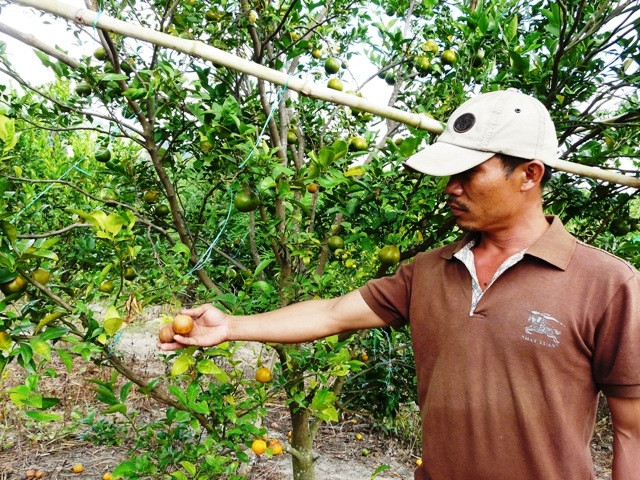 Ngay lập tức, ông Sơn đã thông báo sự việc với ông Tuấn để kiểm tra, tìm biện pháp khắc phục. Thế nhưng, ông Tuấn lại cho rằng, vườn quýt bị bệnh, nên khuyên ông Sơn mua thuốc bảo vệ thực vật để phun, kết hợp với bón phân dưới gốc. Nghe theo lời ông Tuấn, ông Sơn đã bỏ thêm 20 triệu đồng để mua thuốc và phân về cứu vườn cây nhưng vẫn không có kết quả. Ông Sơn bức xúc cho biết: “mùa quýt năm 2015 hoàn toàn mất trắng, nếu tính cả thiệt hại vườn cây qua hơn sáu năm chăm sóc gia đình tôi mất trắng gần hai tỷ đồng. Nghiêm trọng hơn, gần một nửa vườn quýt bị chết hoặc tàn lụi, không thể tiếp tục ra quả”.