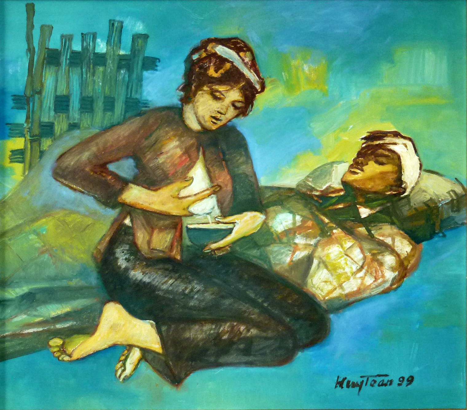 Hay bức tranh không đề tên, mô tả một người mẹ trẻ đang vắt từng giọt sữa của mình bên cạnh một anh thương binh. Những bức tranh ở những góc cạnh khác nhau của cuộc chiến đã gợi lên rất nhiều cảm xúc cho người xem.