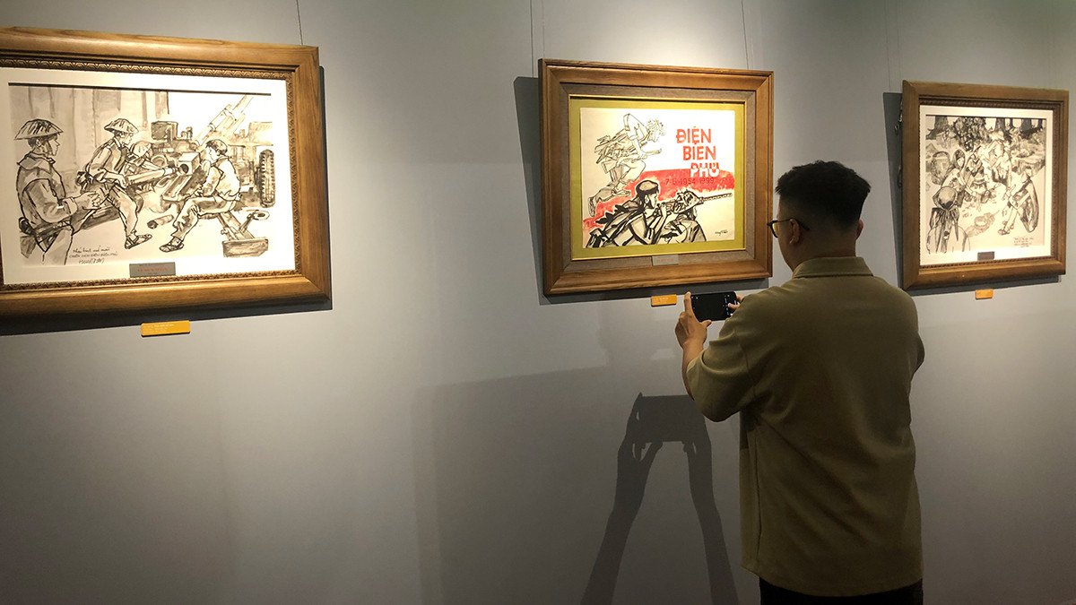 Chiếm phần lớn trong số 70 tác phẩm trưng bày tại triển lãm là những bức ký họa bằng bột màu và chì, ghi lại rất nhiều hình ảnh từ chiến trận đến đời thường của những người lính Điện Biên Phủ và bà con các dân tộc ở Tây Bắc.