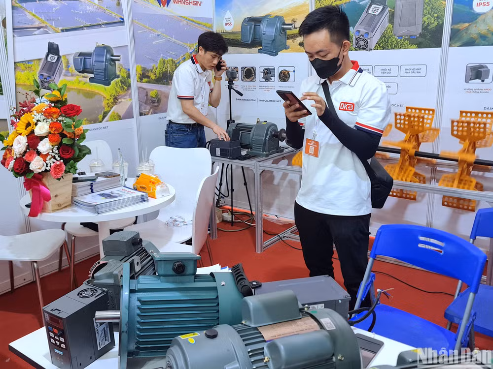 | Nhiều thiết bị, sản phẩm chuyên về ngành tôm trưng bày tại Hội chợ Triển lãm quốc tế Công nghệ ngành tôm Việt Nam năm 2024. |