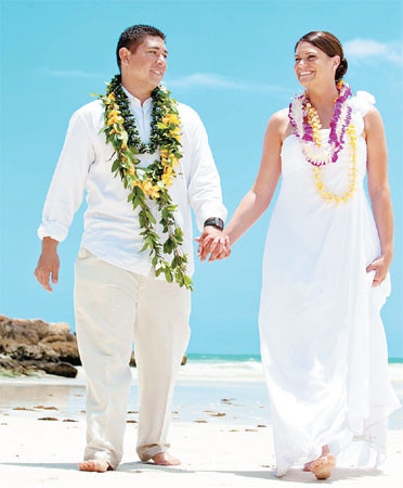 Cả chú rể và cô dâu người Hawaii bản địa mang vòng hoa biểu thị tình yêu của người này dành cho cho người kia và sợi dây buộc tay họ lại với nhau thể hiện việc hai gia đình giờ đã trở thành một. Trong nghi thức hôn lễ ho’ao (nghĩa là đợi đến bình minh), hiện không còn phổ biến, cặp vợ chồng được quấn trong một tấm vải được cầu phúc- truyền thống là làm từ vỏ cây - gọi là kapa mang đến sức khỏe, của cải và con cái đầy nhà.